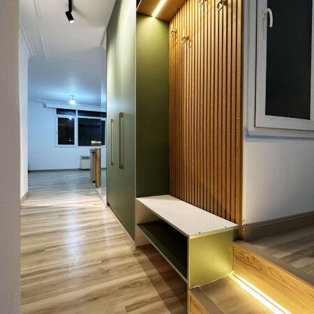 خواسته کارفرما توی این پروژه طراحی داخلی فضای هال و پذیرایی و آشپزخانه و یکی از اتاق خوابها بود و با توجه به داشتن ویو و منظر و پنجرههای نسبتاً بزرگ در این آپارتمان و نیازها و سلایق کارفرما، این طراحی داخلی به شکلی که در صفحه مربوط به آن میبینی، توسط گروه معماری رینو انجام شد.